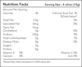 Quality, freshness and Greek tradition are standards for all Martinis Olive products. We present to you the true taste of Greece. Kalamata Olives Whole Pitted Martinis Premium Greek Kalamata Olives are fruity, luscious, robust and imported from sun drenched Greece. A long established family standard of Quality and Dependability.