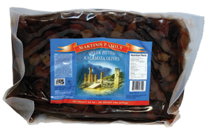 Quality, freshness and Greek tradition are standards for all Martinis Olive products. We present to you the true taste of Greece. Kalamata Olive Pouches Martinis Premium Greek Kalamata Olives are fruity, luscious, robust and imported from sun drenched Greece. A long established family standard of Quality and Dependability.