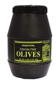 Martinis Premium Kalamata Olives are fruity, luscious, robust and imported from sun drenched Greece. A long established family standard of Quality and Dependability.